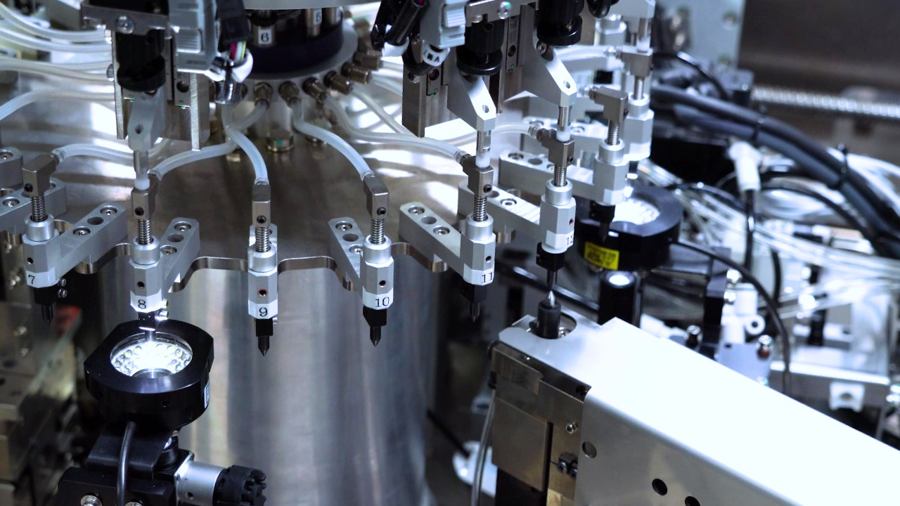 多機能テーピングNCT-5100シリーズはパーツフィーダから供給された製品を、検査の結果から良品のみをテーピングする装置です。